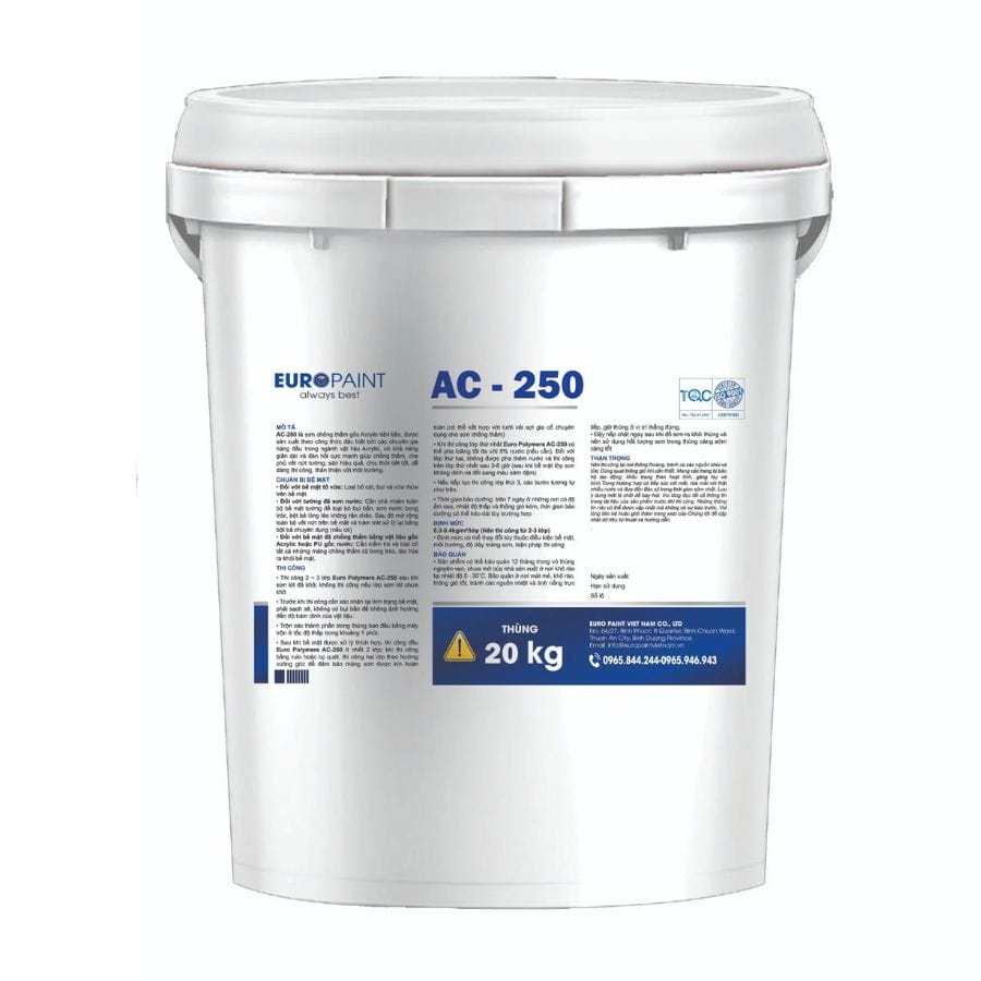 Sơn chống nóng Euro Polymers AC-250 1 thành phần gốc Acrylic cao cấp, chống thấm và giảm nhiệt hiệu quả. Với khả năng đàn hồi tốt, giúp chống thấm và chống nóng tối ưu . Bảo vệ công trình khỏi sự khắc nghiệt của thời tiết.